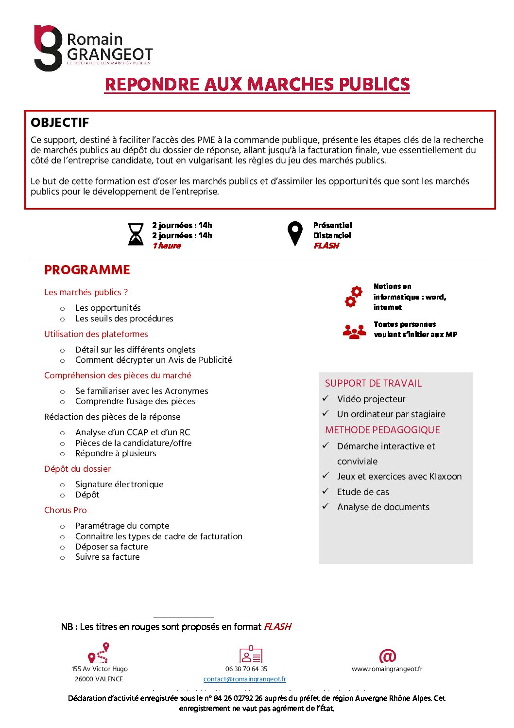 Vous manquez de temps ? Découvrez également nos formations FLASH, où nous abordons en 1h un point clé des marchés publics.